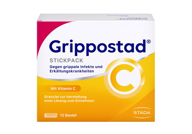 Erkältungen beginnen häufig im Nasen-Rachenbereich. Die Verantwortlichen der verschiedenen Erkältungssymptome sind Viren, die über die Atemwege in unseren Körper gelangen. Die Übertragung erfolgt im Allgemeinen durch winzig kleine Flüssigkeitströpfchen, die ein bereits erkälteter Mensch beim Husten, Niesen oder Sprechen in großen Mengen in der Luft verteilt. Haben die Erkältungsviren erst einmal ihren Weg in den Organismus gefunden, lassen sie sich vor allem in den oberen Atemwegen nieder. Dort finden sie ideale Bedingungen, um sich schnell und millionenfach zu vermehren. Bereits 1 bis 2 Tage nach der Ansteckung treten die ersten Anzeichen der Krankheit auf. Da Viren nicht direkt bekämpft werden können, konzentriert man sich auf die Behandlung der Symptome. Die meisten Erkältungen verlaufen ohne größere Nachwirkungen, doch wenn sie verharmlost werden, können sie ernsthafte Folgeerkrankungen nach sich ziehen. Grippostad® Heißgetränk eignet sich besonders in den ersten Tagen einer Erkältung. Paracetamol hilft Schmerzen zu lindern und das Fieber zu senken. Grippostad Heißgetränk enthält Vitamin C.
