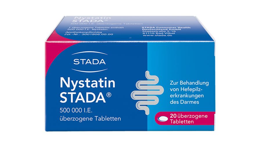 Der Wirkstoff von Nystatin STADA® ist Nystatin. Eine überzogene Tablette enthält 500.000 I. E. (Internationale Einheiten) des Wirkstoffs. Nystatin kann den Körper dabei unterstützen, Pilze aus der Candida-Gruppe zu bekämpfen, indem der Wirkstoff deren Zellwandstruktur zerstört. Das Nystatin bildet Poren und macht die Zellwand somit durchlässig. In der Folge ist der Stoffwechsel der Pilz-Zelle behindert und sie stirbt ab.