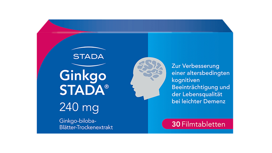 Ginkgo STADA® ist ein pflanzliches Arzneimittel zur Verbesserung einer altersbedingten kognitiven Beeinträchtigung und der Lebensqualität bei leichter Demenz. Hinweis: Enthält Lactose und Glucose.