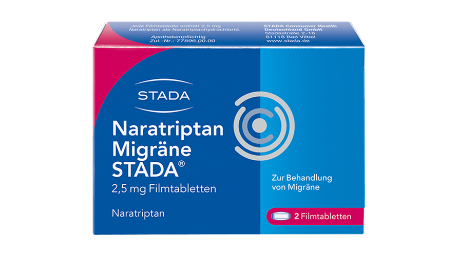 Linderung kann hier Naratriptan Migräne STADA® schaffen. Naratriptan wirkt auf die durch Migräne schmerzhaft erweiterten Blutgefäße verengend und lindert so lokale Schmerzen. Begleitsymptome wie Übelkeit, Licht- oder Lärmempfindlichkeit bessern sich ebenfalls.
